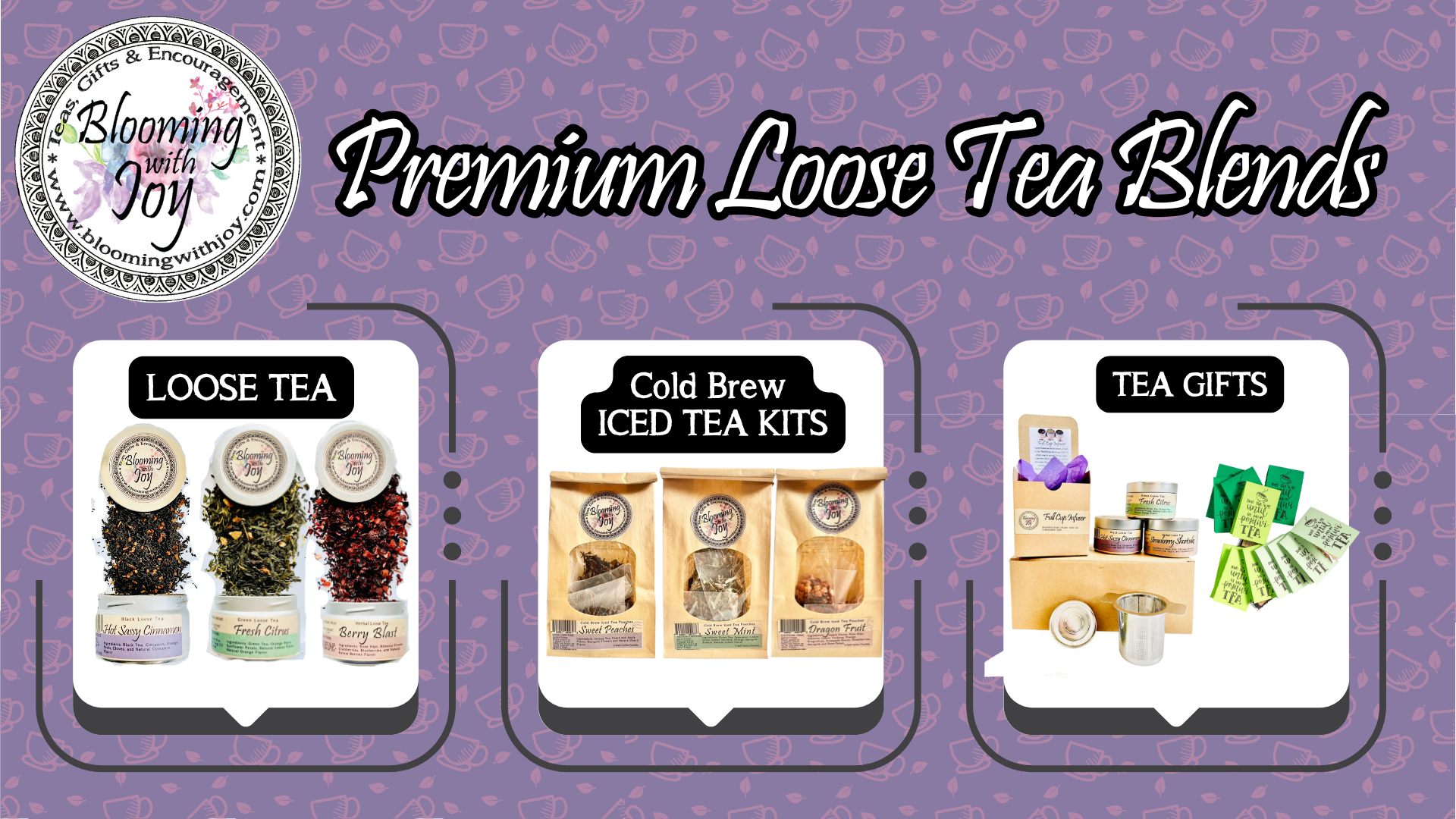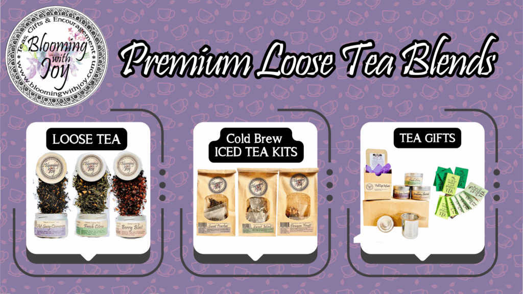 Blooming With Joy is an O’Fallon, MO, woman owned and operated tea brand. We specialize in quality loose tea and beautiful gifts. We offer Nationwide Shipping and Local Pickup in O’Fallon Mo and Cottleville Mo. Our products are sold in several stores, including all STL Metro Fresh Thyme Market Locations. We travel around the Missouri and Midwest for pop-up shops. Stay stocked up with your favorite tea in our Subscription Boxes. Experience pure joy one cup at a time.